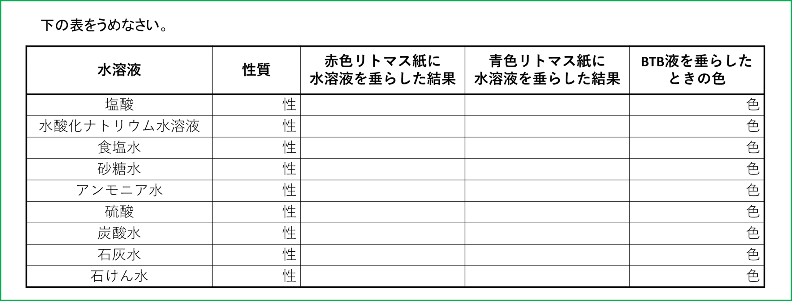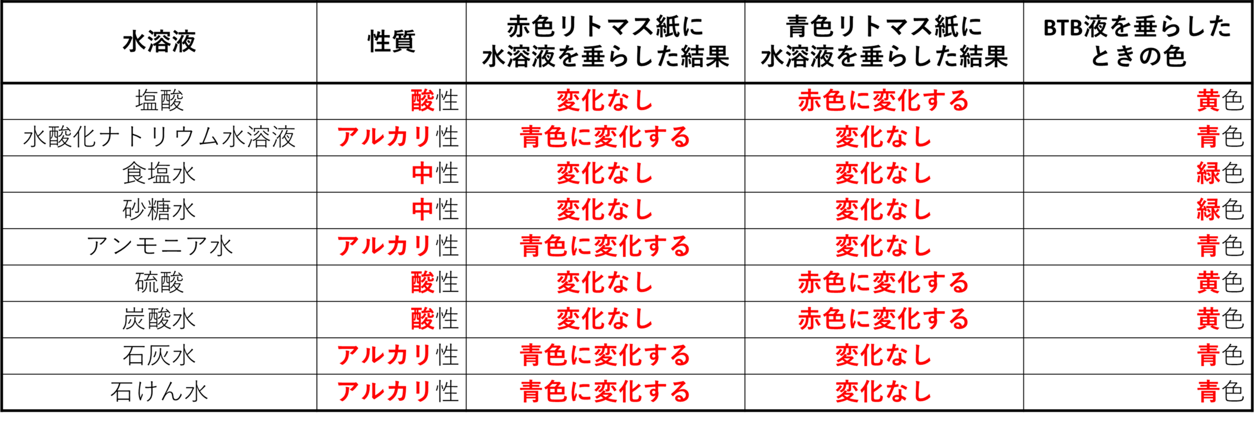 物質ごとに水溶液の性質を覚えていくのはなかなか難しいと思います。まずは酸性・中性・アルカリ性のそれぞれの基本的な性質や見分け方を踏まえたうえで,自分の身の回りのものや経験と組み合わせながら繰り返し復習して覚えていきましょう。