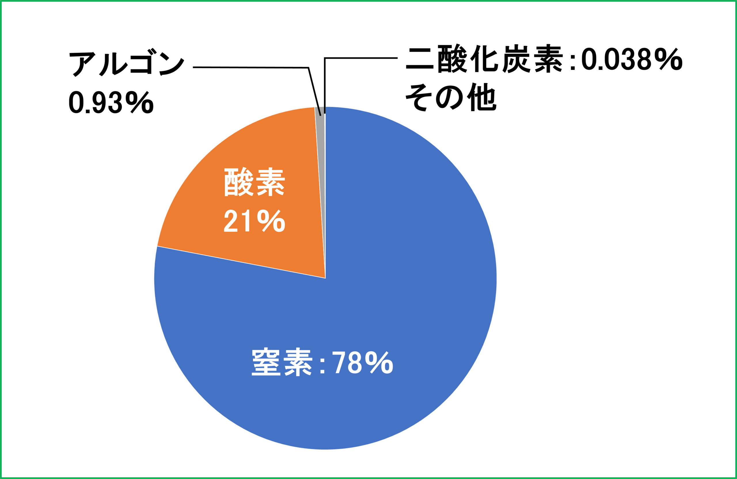 まず空気中で1番多い気体は,酸素や二酸化炭素ではなく「窒素」です。