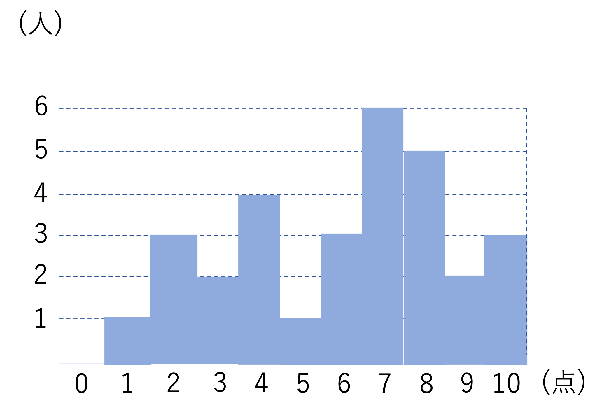 下の帯グラフは,あるクラスでおこなった10点満点のテストの結果を表したものです。次の問いに答えなさい。