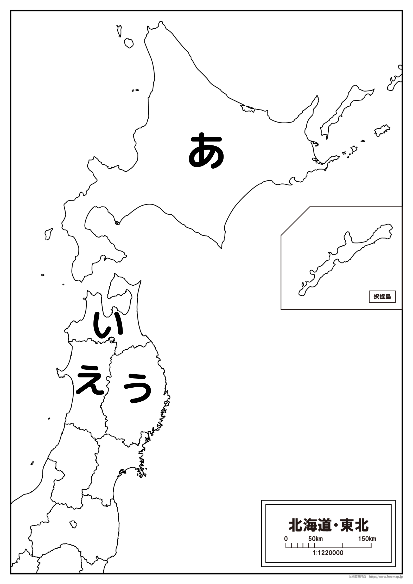 それぞれあ、北海道/う、岩手県/え、秋田県になります。
