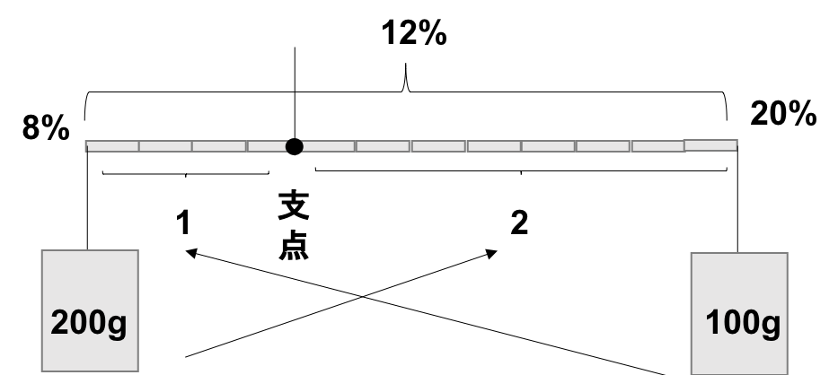 20%の砂糖水100gと、8%の砂糖水200gを混ぜると、何%の砂糖水になりますか。