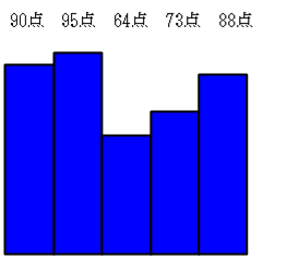 A君の5回のテストを棒グラフで書いてみると、次の図のようになります。高さは点数を表します。