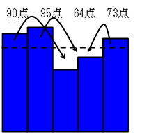 この時の高さが求める平均点となります。どうしたらこの高さが求まるでしょうか。