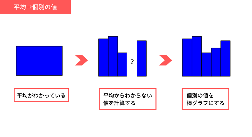 先ほどの「平均を求める」問題と順番は違いますが、考え方は一緒ですね。