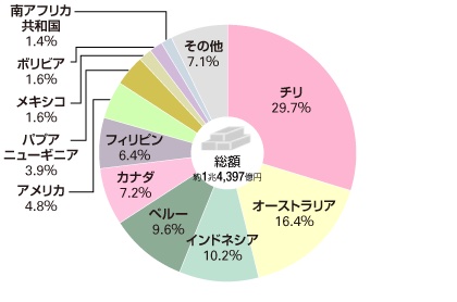 主な輸入品と輸入国のグラフを見ながら詳しくみていきましょう。