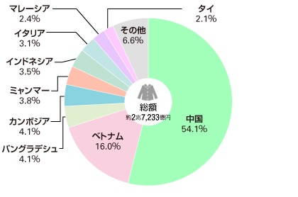 日本で売られている衣服も輸入品が多くあり、大部分を占めているのは中国です。