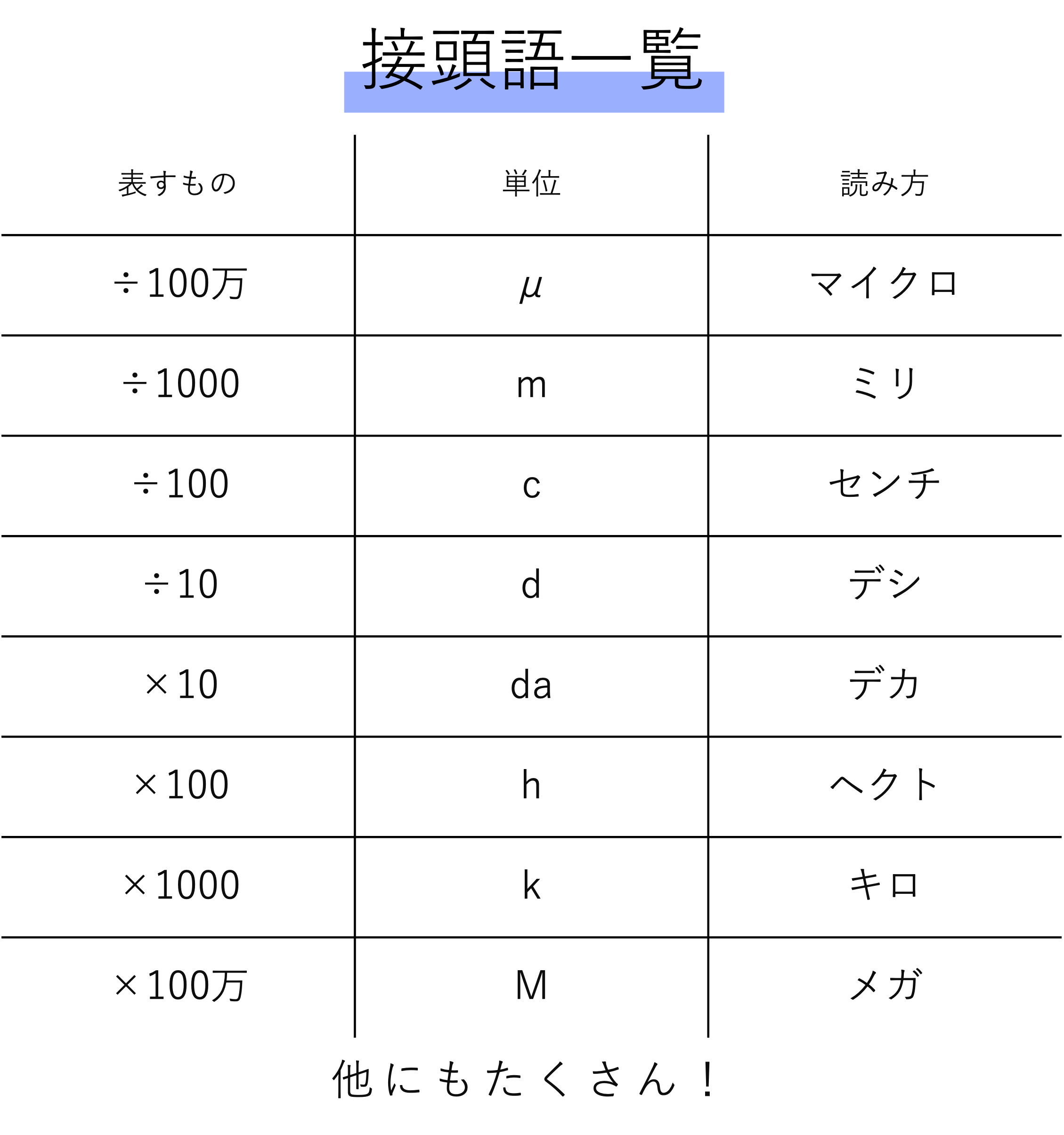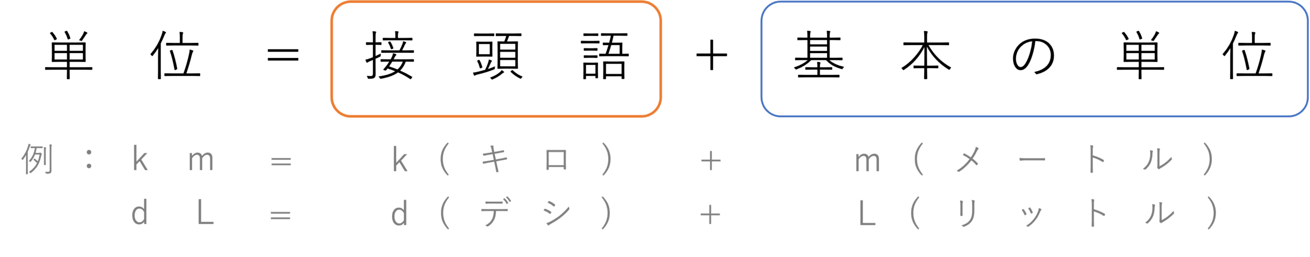 では続いて接頭語の部分について覚えていきましょう。先ほども説明したように,接頭語とはm(ミリ)やc(センチ)といった,基本の単位にくっつく記号のことを指します。普段何気なく算数や理科で使っているこの接頭語ですが,実はそれぞれきちんとした意味があるのです。したがってここでは受験で登場する4つの記号に注目し,その意味を解説していきます。