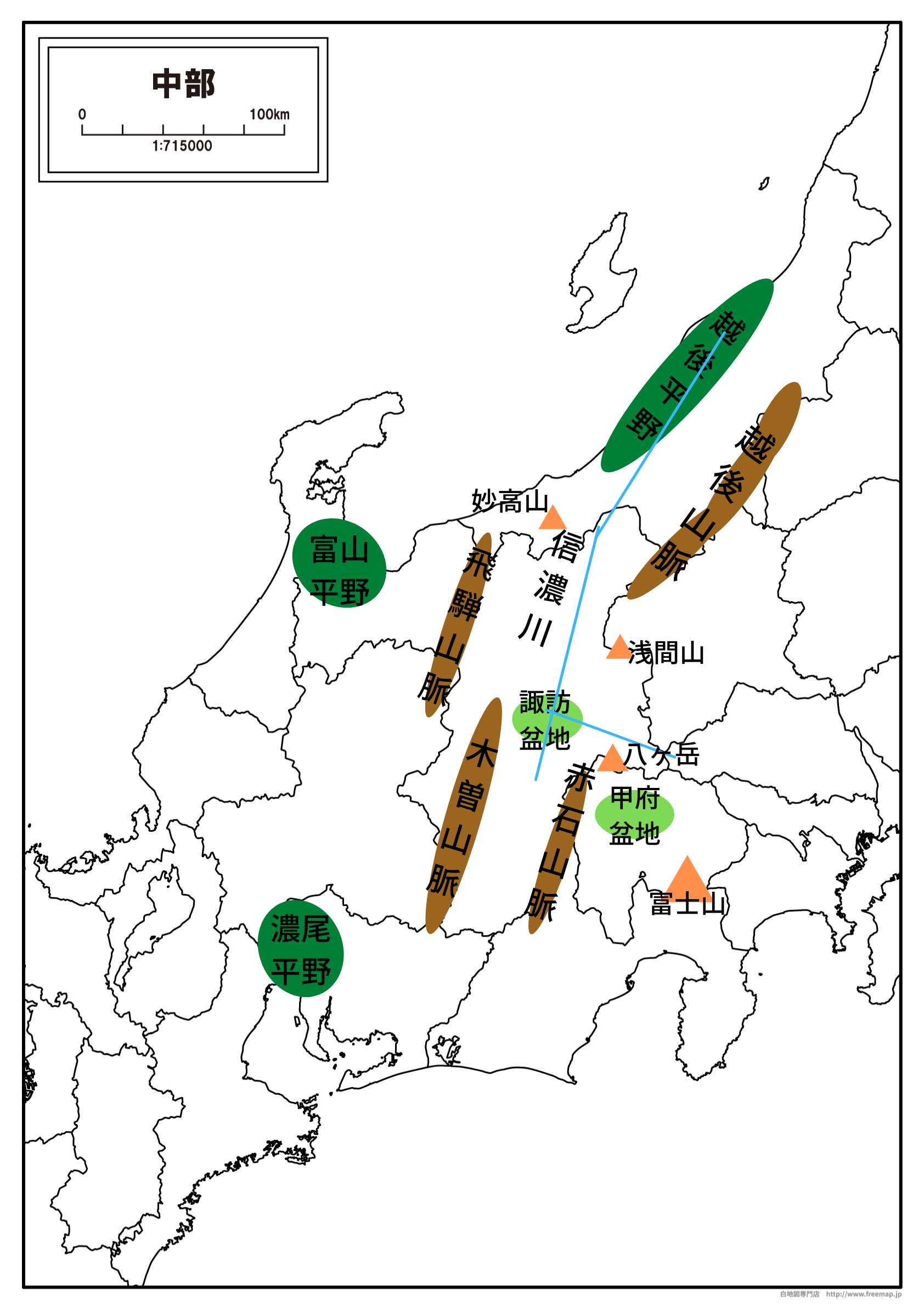 新潟県、富山県、石川県、福井県、岐阜県、長野県、愛知県、静岡県、山梨県の9県からなる中部地方の地形・気候・産業などをおさえていきたいと思います。