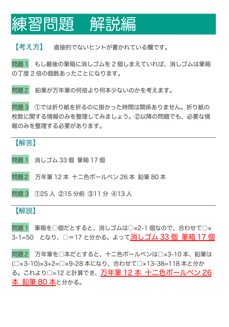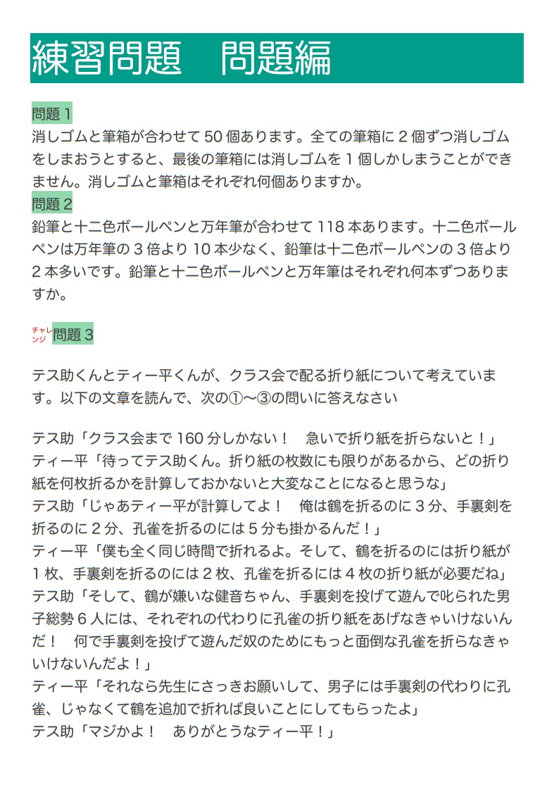 以下、特典の練習問題となっております。お子さま皆さまの勉強の一助となれば幸いです。