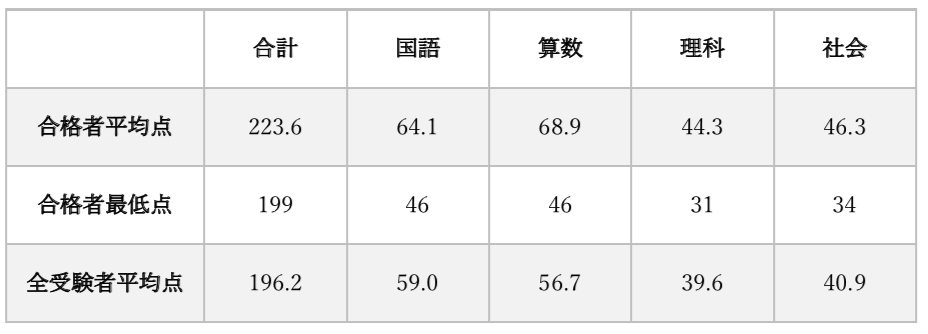 満点・受験者平均点・合格平均点・合格者最高点・合格者最低点