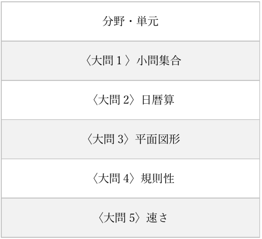 また頻出の単元に偏りがあることも特徴のうちの1つです。特に、「多角形・おうぎ形の複合図形」、「規則性」、「和・差・比の文章題」、「速さ」の4単元からは毎年と言ってよいほど出題が見られます。