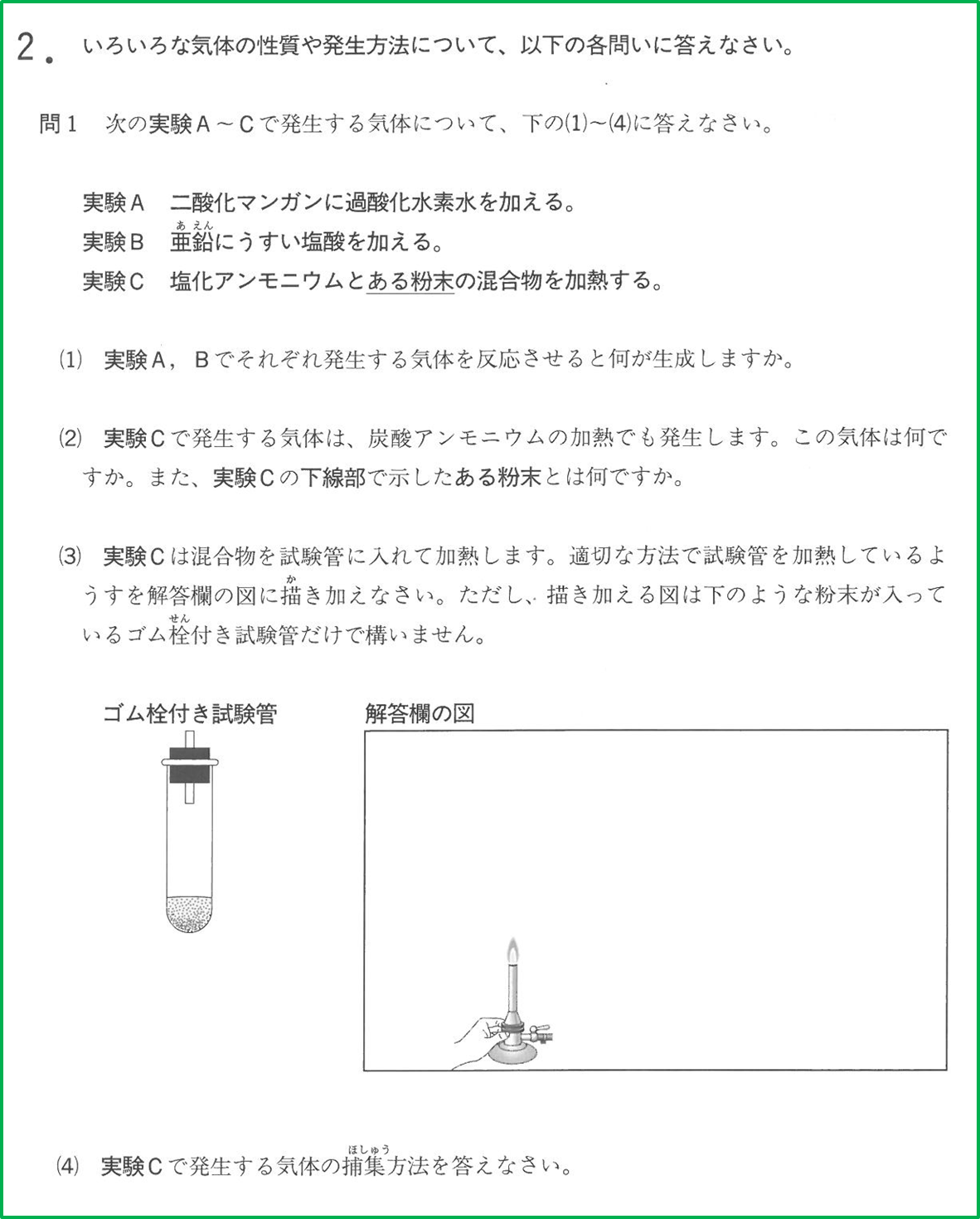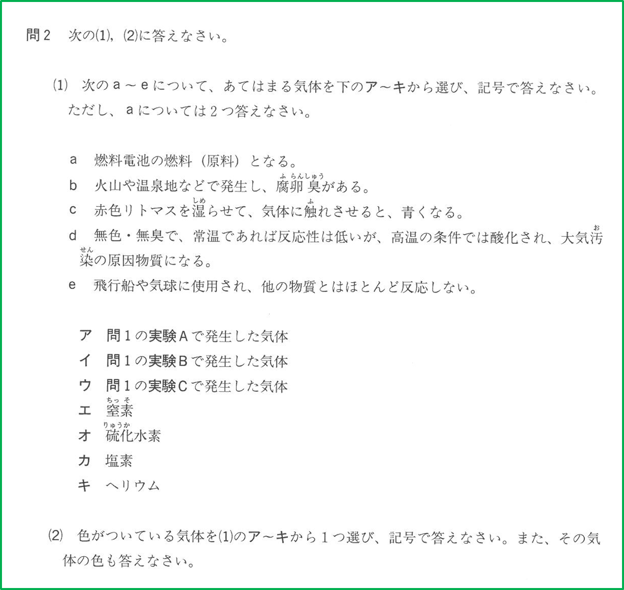 気体についての知識が曖昧だと問題を解いているときに混乱し,他の選択肢なども引きずられて大きな減点につながることがあるのでそれぞれの性質をしっかり暗記できるようにしましょう。