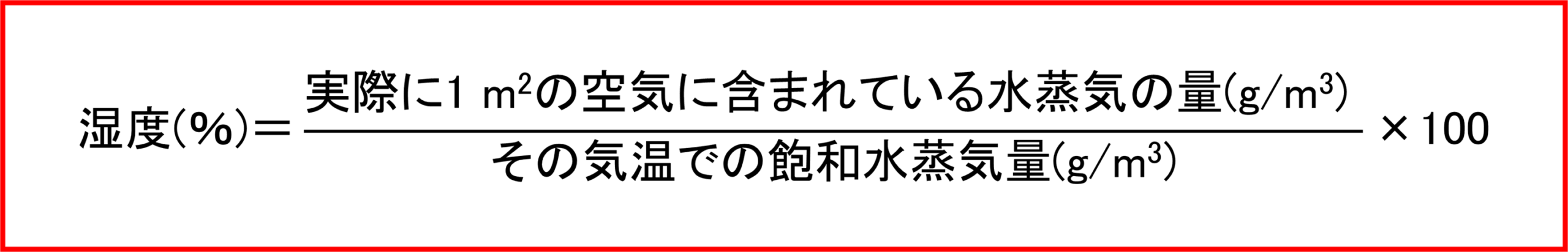 ここで空気に含まれている水蒸気量が,飽和水蒸気量の何%なのかという値を出します. これが「湿度」と呼ばれるものです.