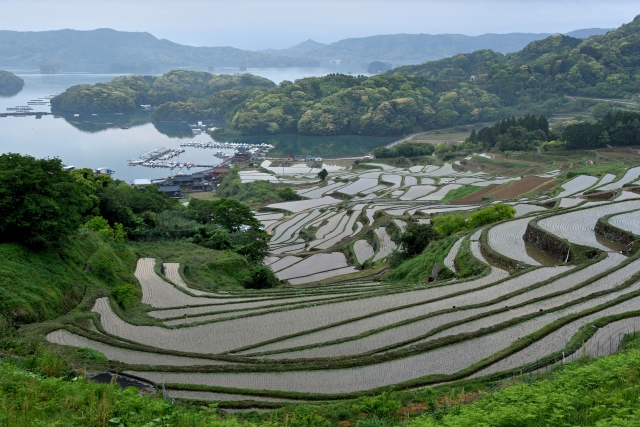 - 棚田/段々畑:山の斜面を耕地に利用する方法です。稲作を行う場合は棚田、くだもの(みかんなど)などの栽培を行う場合は段々畑と呼ばれます。