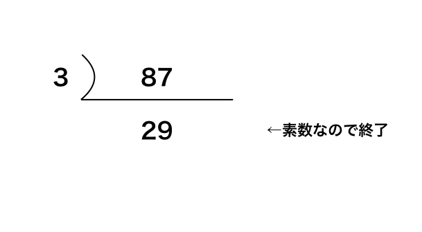 - (2) 87がどの数で割り切れるかを探し,2つの整数の積で表すと,