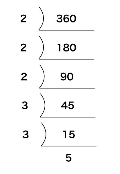 - (1) 360 = 2 × 2 × 2 × 3 × 3 × 5