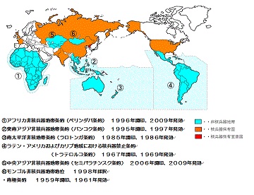 ある区域内の国々が、核兵器の製造、実験、取得、保有などをしないと約束する非核兵器地帯条約を結ぶ動きも80、90年代以降行われてきましたが、強い効力を持つものではなく、地域の拡大も求められています。