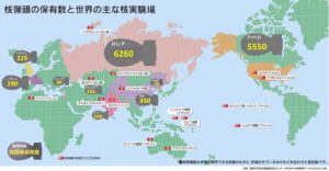 冷戦下、アメリカとソ連では、核兵器を保有することで脅威を与え、他国に攻撃を思いとどまらせようと核軍拡競争となります。そのような核抑止論は今なお続けられ、核兵器の撤廃が進みません。