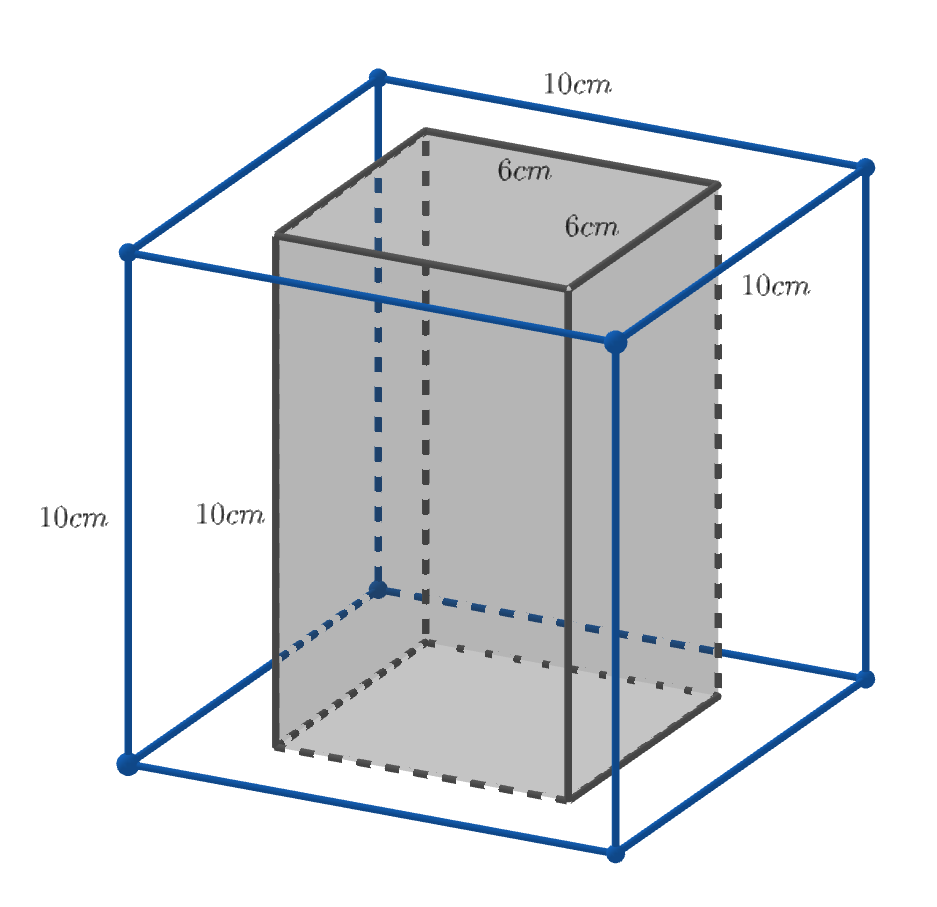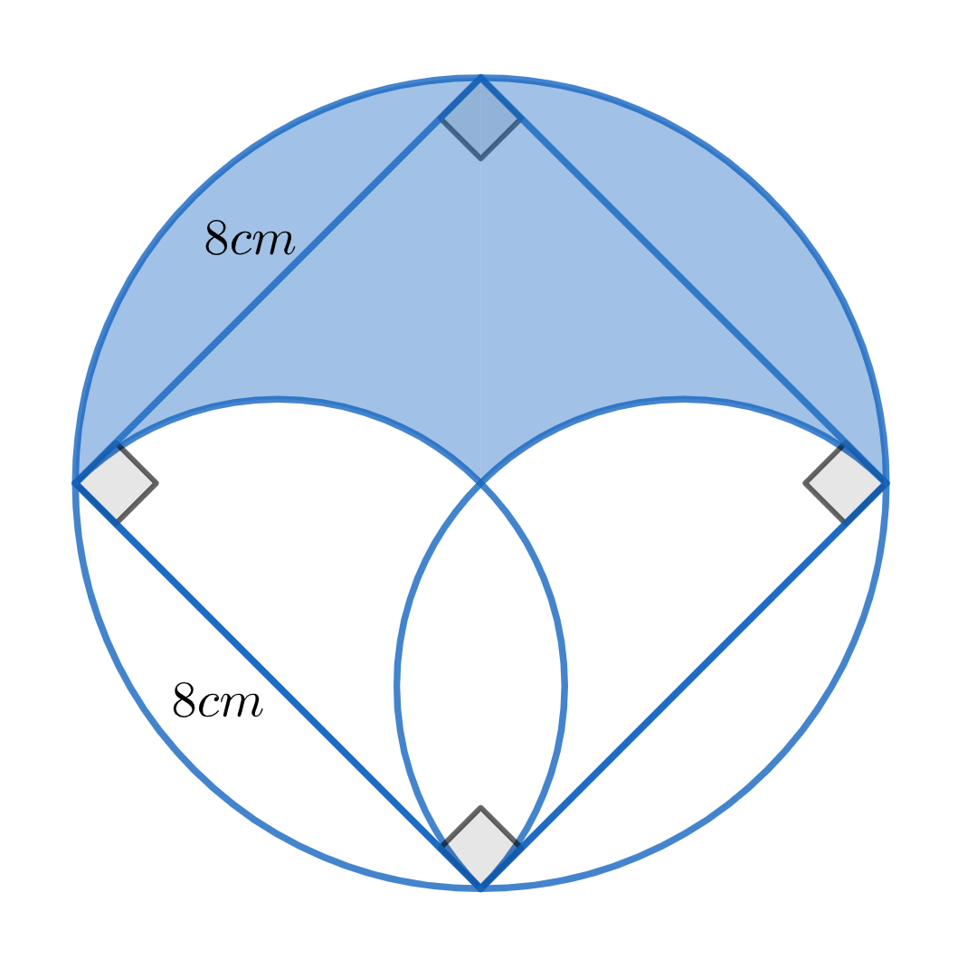 解き方のポイントとしては,図形の中に存在する図形を見極めることが大切です。例えば上の平面図形では円の中に正方形と半円2個が存在します。また下の空間図形では,立方体の中に直方体が存在します。このような登場した図形を図形同士の足し引きとして捉えていくということが攻略法になります。