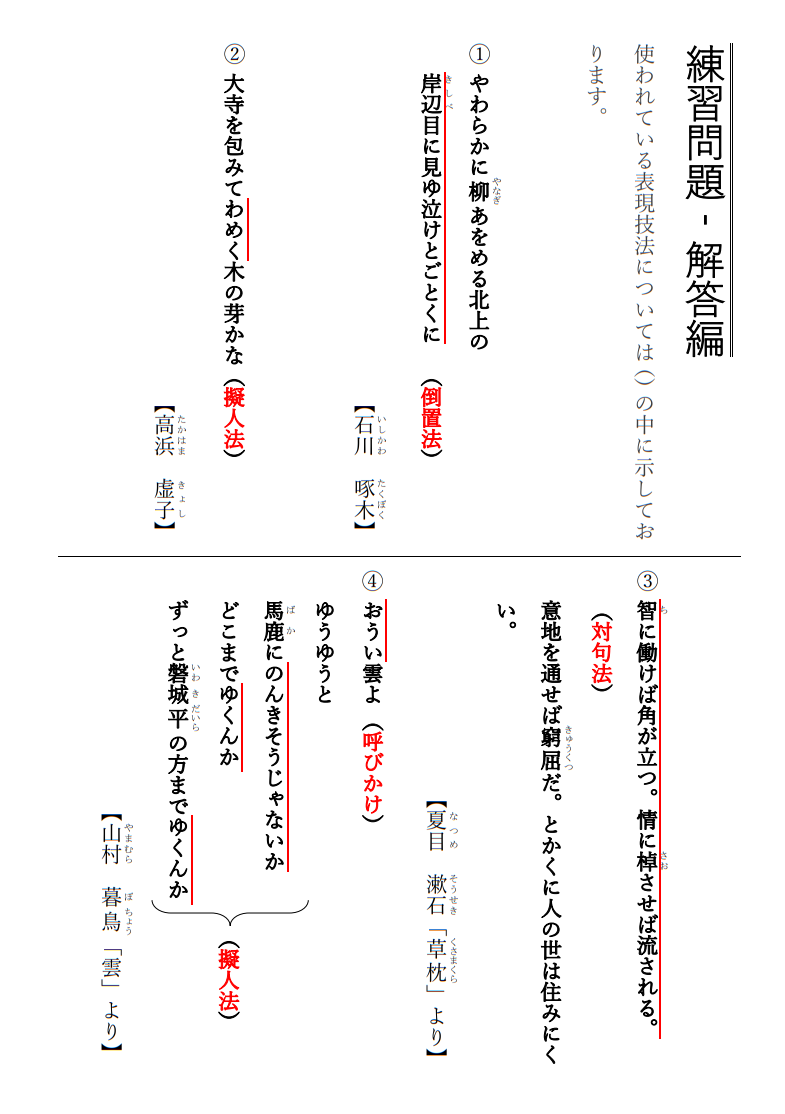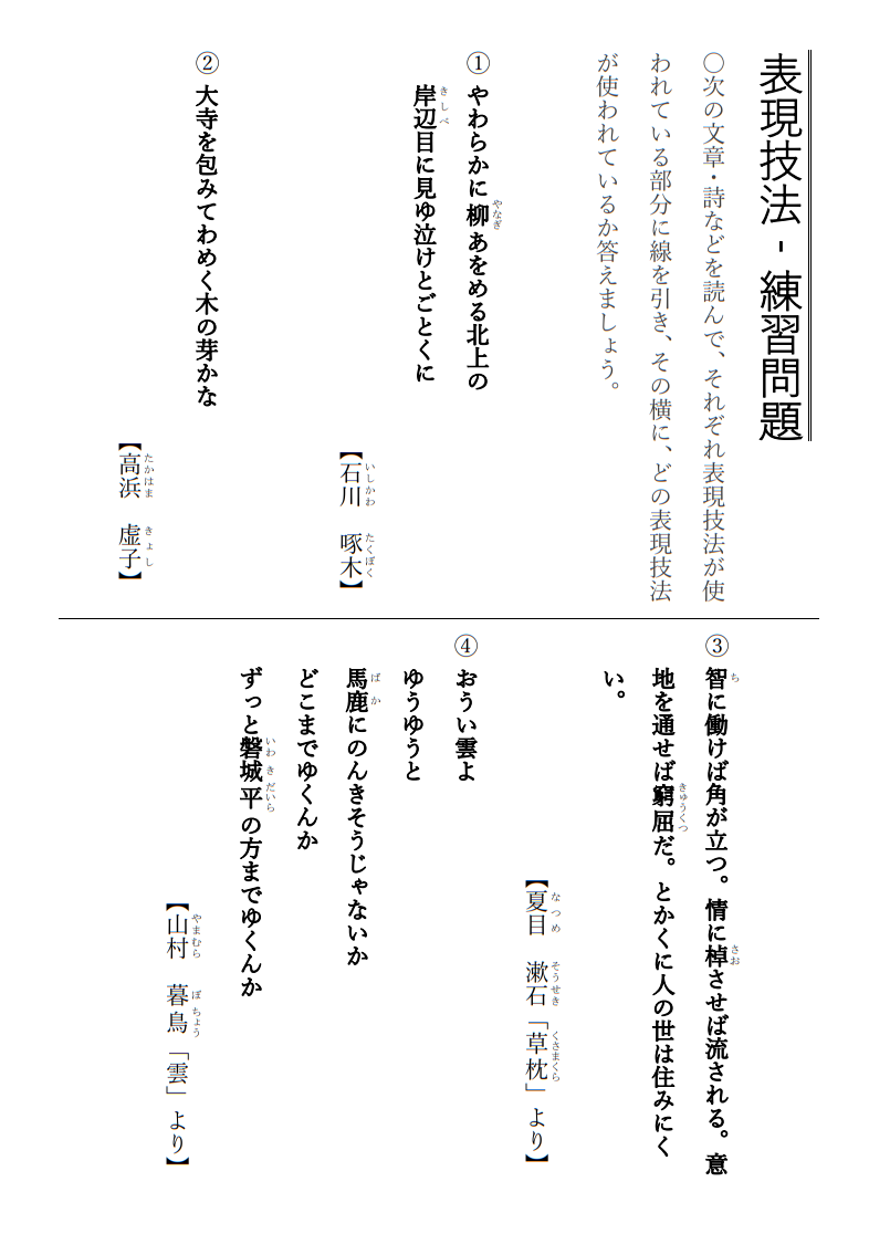 国語の「表現技法」7つをわかりやすく解説!比喩、対句法、反復法、呼びかけなど‐無料プリント