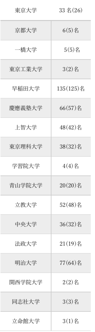 表示形式:合格者数(うち現役合格者数)