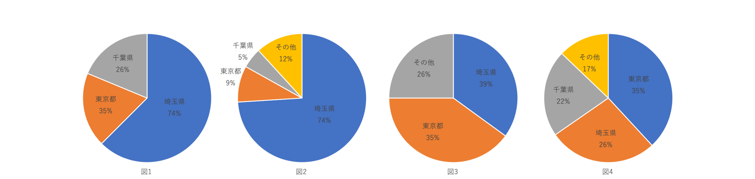 ある学校の生徒に居住地についてアンケートをしたところ,26%が埼玉県以外の生徒でした。その内訳を見ると,東京都が最も多く35%でした。次の各問に答えなさい。