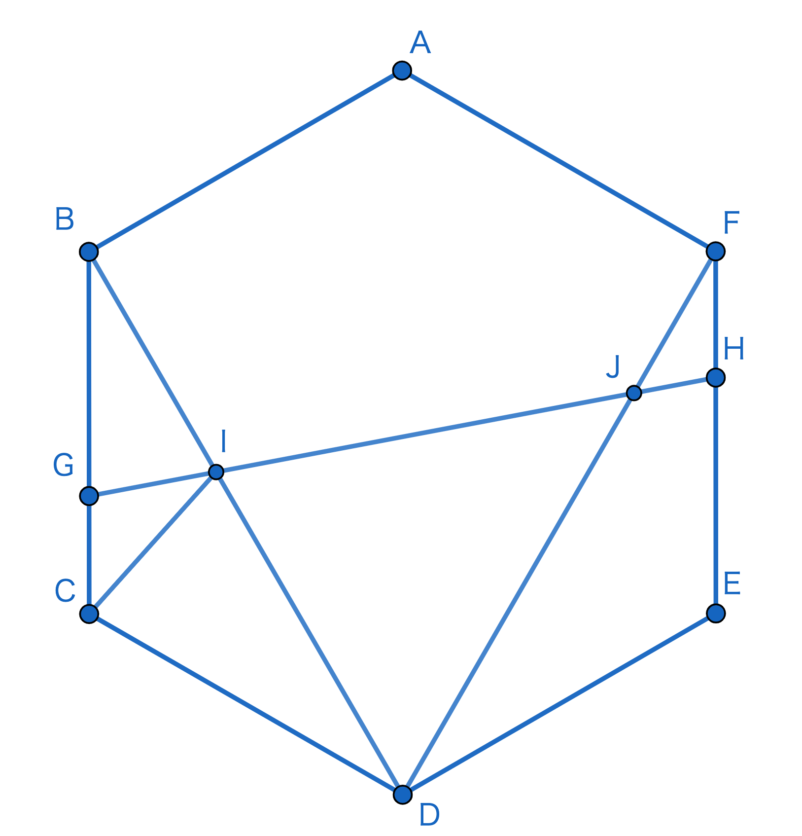図のような,正六角形ABCDEFがあり,その面積は10\(cm^{2}\)です。BG=EHでGI:IC=2:3です。次の問いに答えなさい。(式や考え方も答えなさい。)