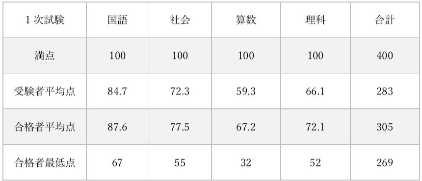 満点・受験者平均点・合格者平均点・合格者最高点・合格者最低点