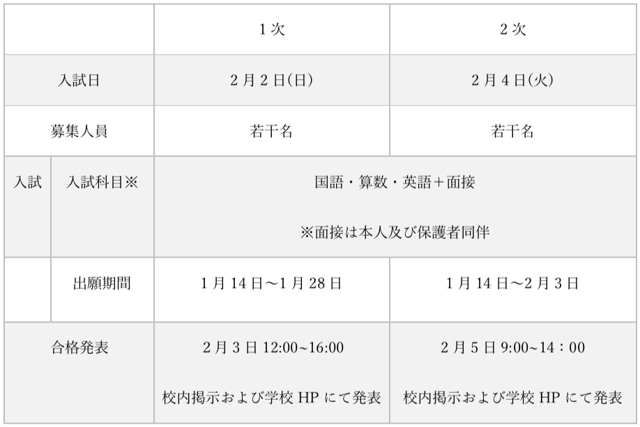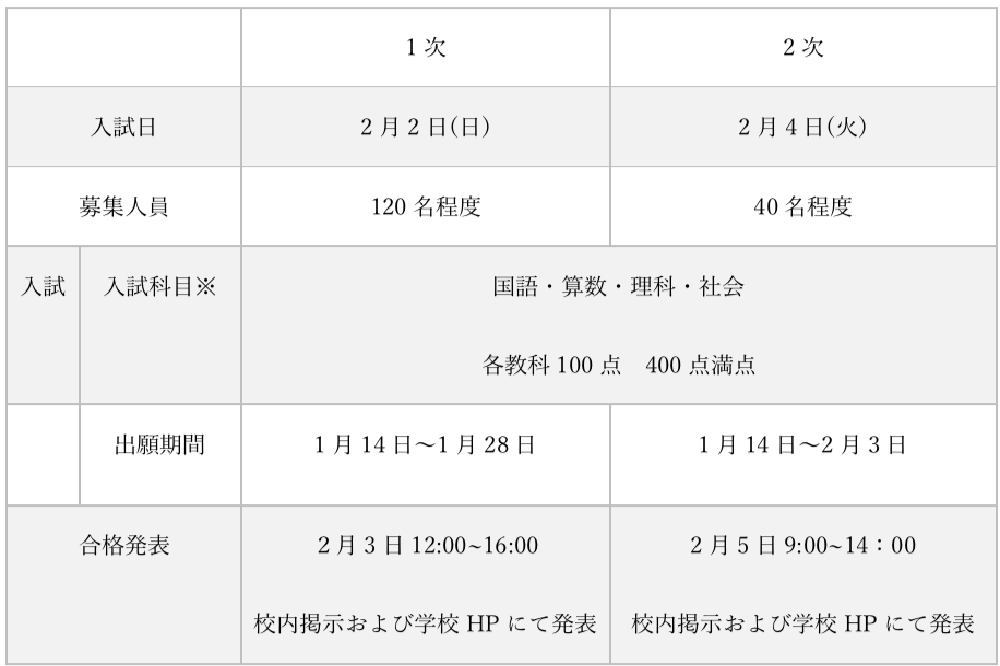 完全中高一貫校となっており、高校からの生徒募集は行っていません。