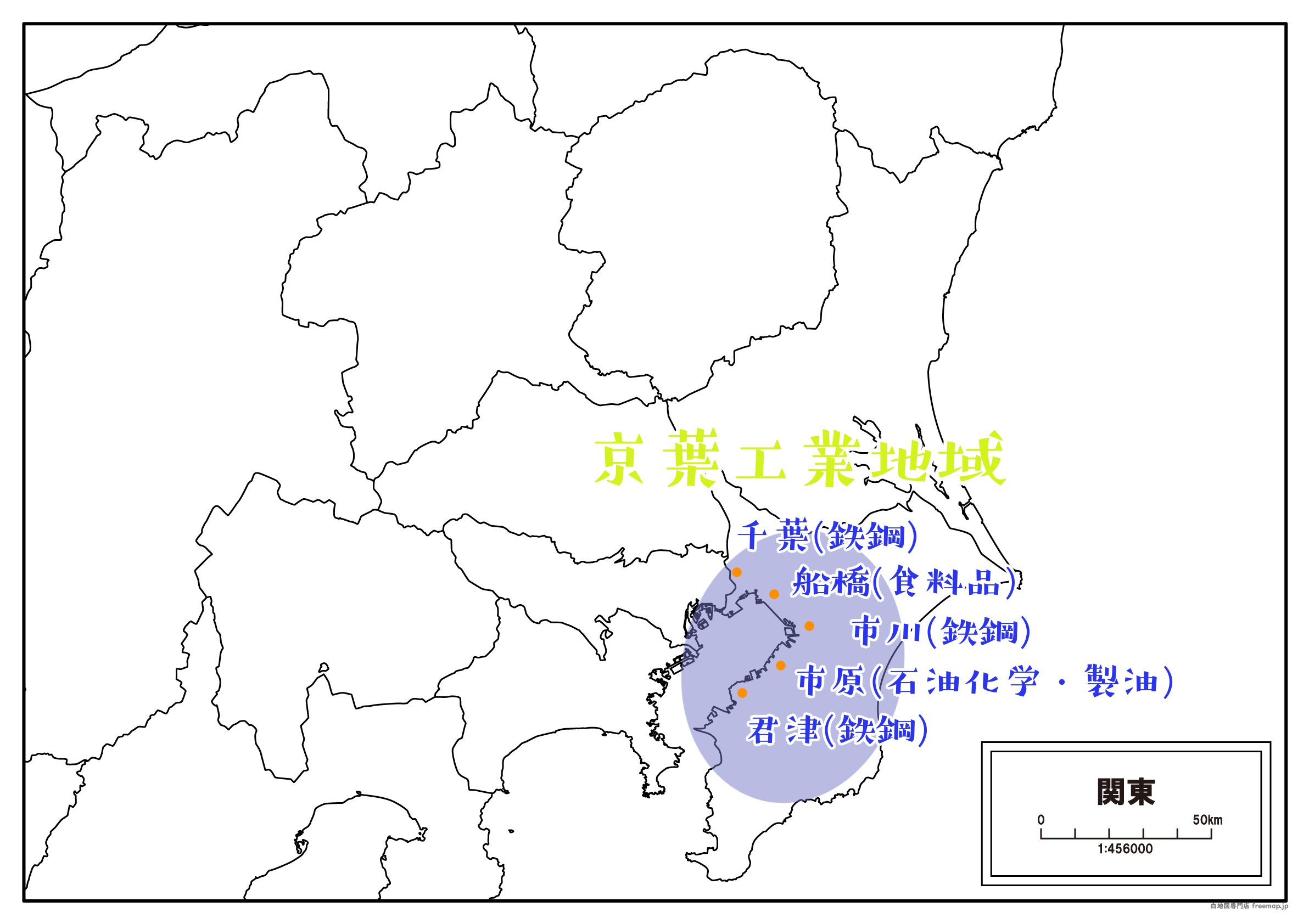 ちなみにこの2つの単語がくっついているという工業地域名は結構多いです。例えば京浜は東京+横浜という構成ですし,阪神は大阪+神戸という構成になっています。もし地名と地域がリンクしなかったら,一度単語を解体してみるといいでしょう。