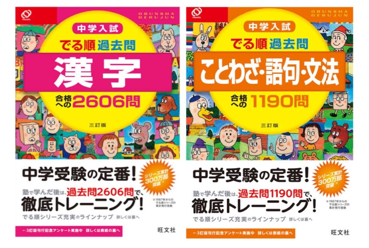 最近の中学入試の傾向を分析して、頻出のものを集めているので、まずはこれを覚えることから始めましょう。どちらも、ステップを踏んで学習できるようになっています。