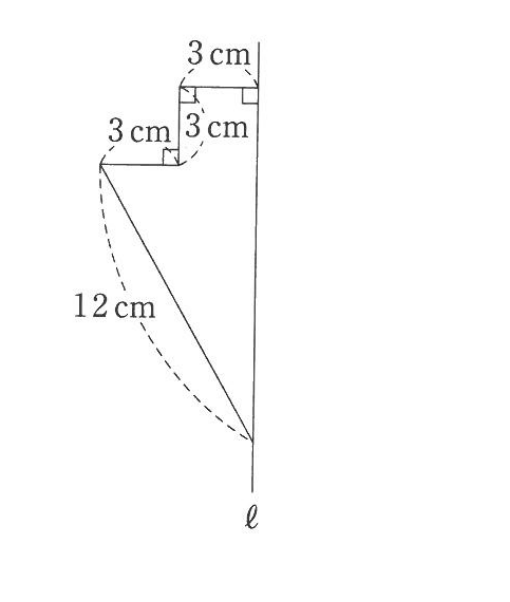 下の図形を直線ℓを軸として1回転させてできる立体の表面積は□㎠です。