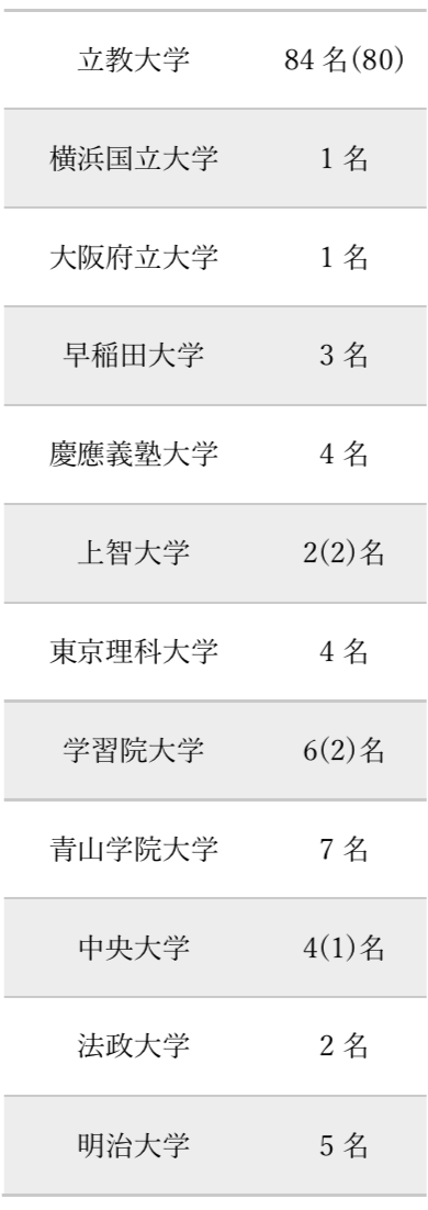 - 表示形式:合格者数(うち現役合格者数)