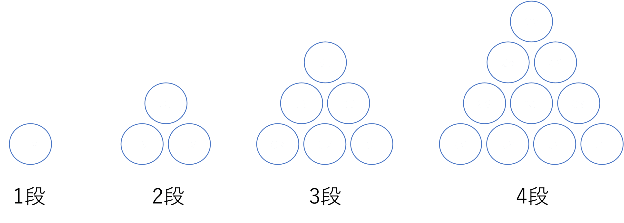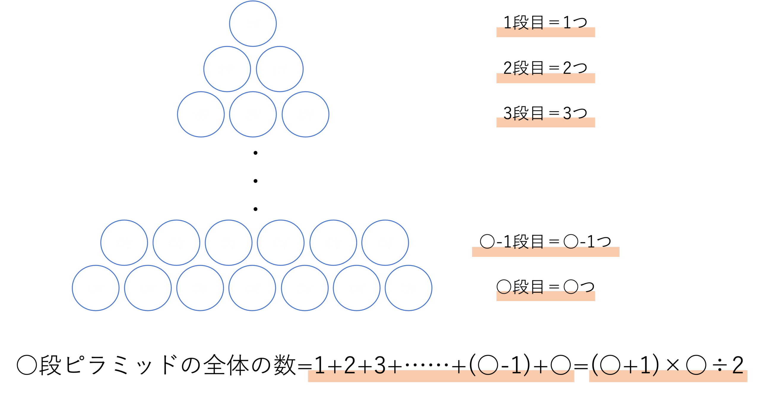 ○段ピラミッドの全体の数=(○+1)×○÷2