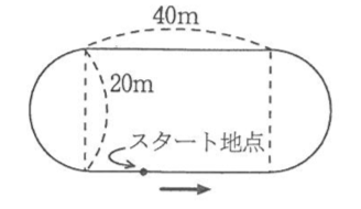 ② AさんとBさんが図のスタート地点を矢印の向きに同時に出発しました。2人とも輪を1秒1回転させながら進みます。途中、Aさんは2回、輪をコースの外にころがしてしまい、コースにもどるまでに1回20秒かかりました。その後AさんとBさんは同時にゴールしました。AさんとBさんは出発してからゴールするまでにこのコースを何周しましたか。スタート地点とゴール地点は同じとは限りません。
