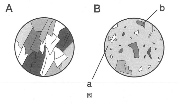 - 問4 マグマが地下深い場所でゆっくりと冷えてできた岩石で、岩石Bはマグマが地表あるいは地表付近で急激に冷えてできた岩石である。