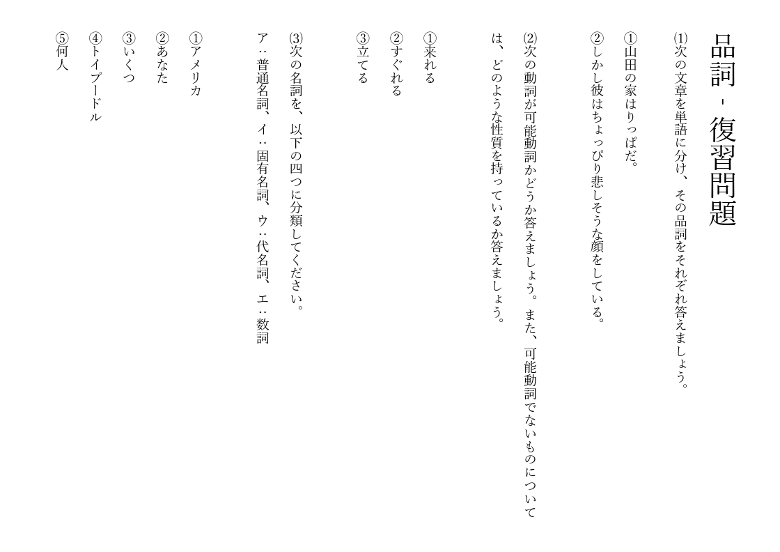 文法の基本「品詞」を攻略!難しい判別問題もこれでカンペキ!品詞例題集&解説‐復習プリント