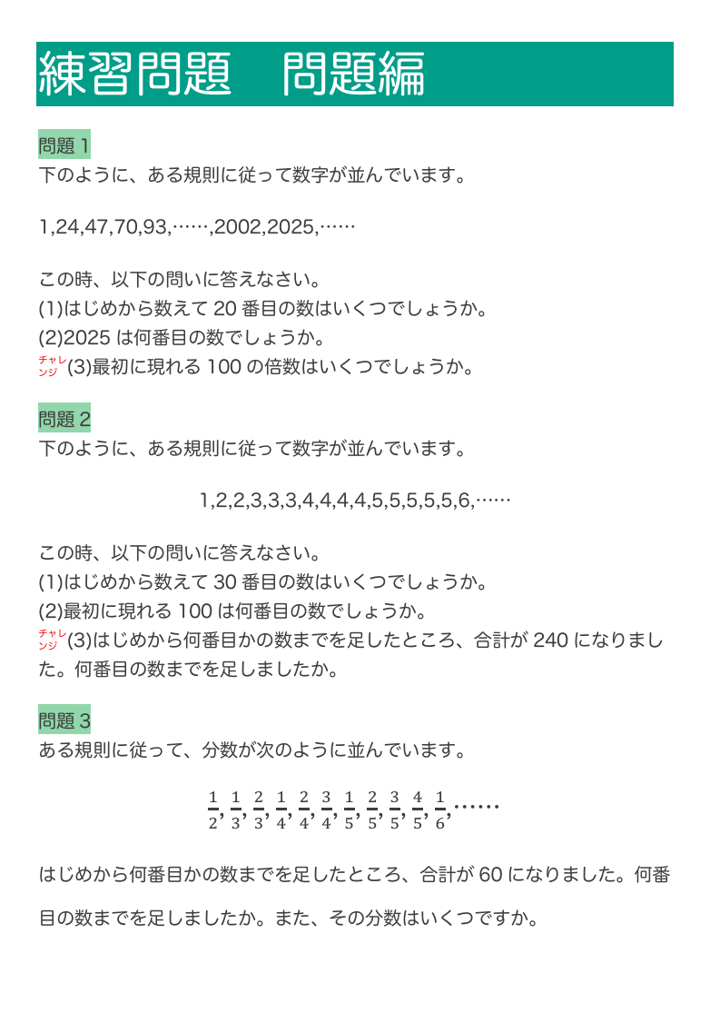 以下、特典の練習問題となっております。お子さま皆さまの勉強の一助となれば幸いです。