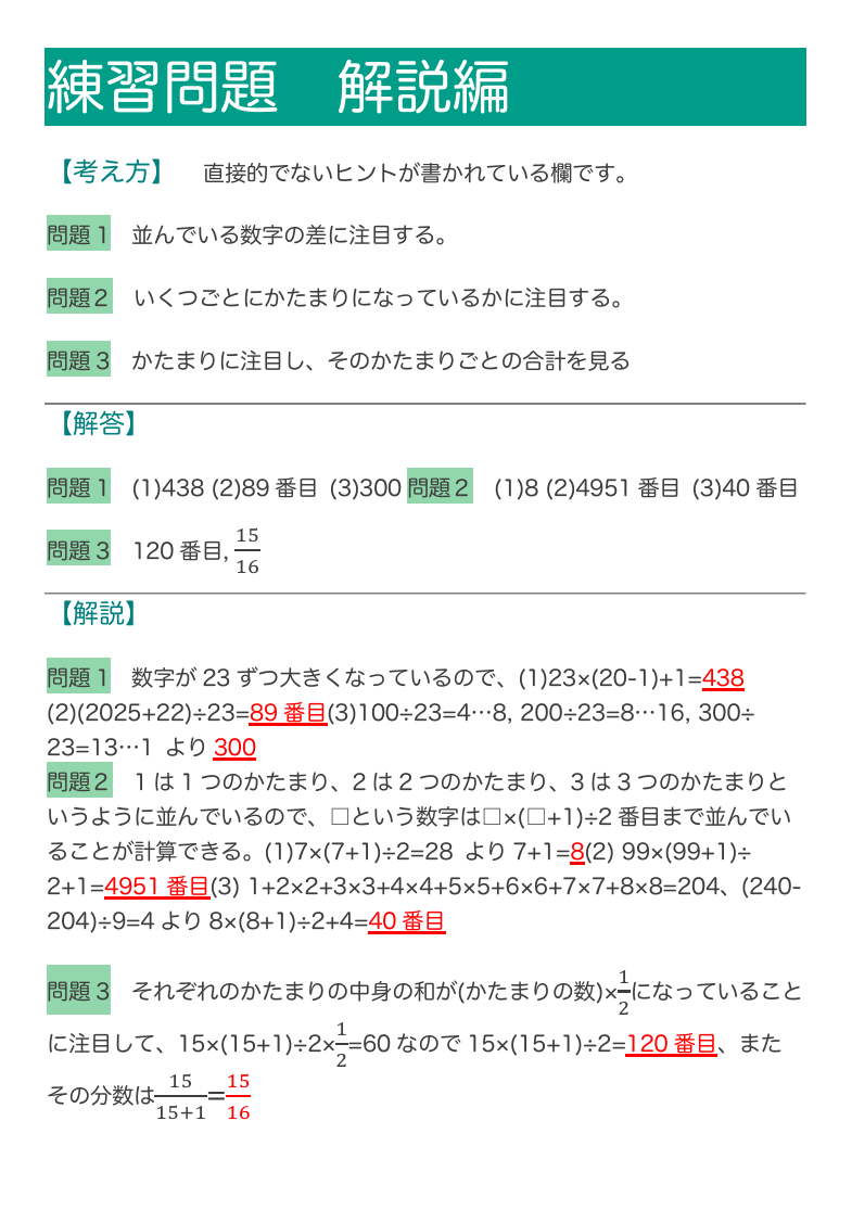 本記事で取り上げたポイントは色々な規則性の問題で応用が効くものです。よろしければ今後の勉強の参考にしてみてください。