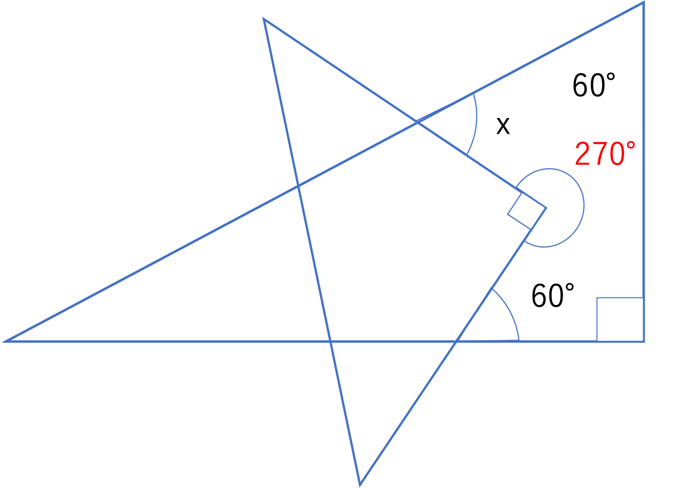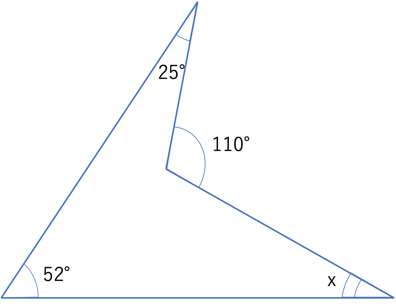 下の図で,角xは何度ですか。