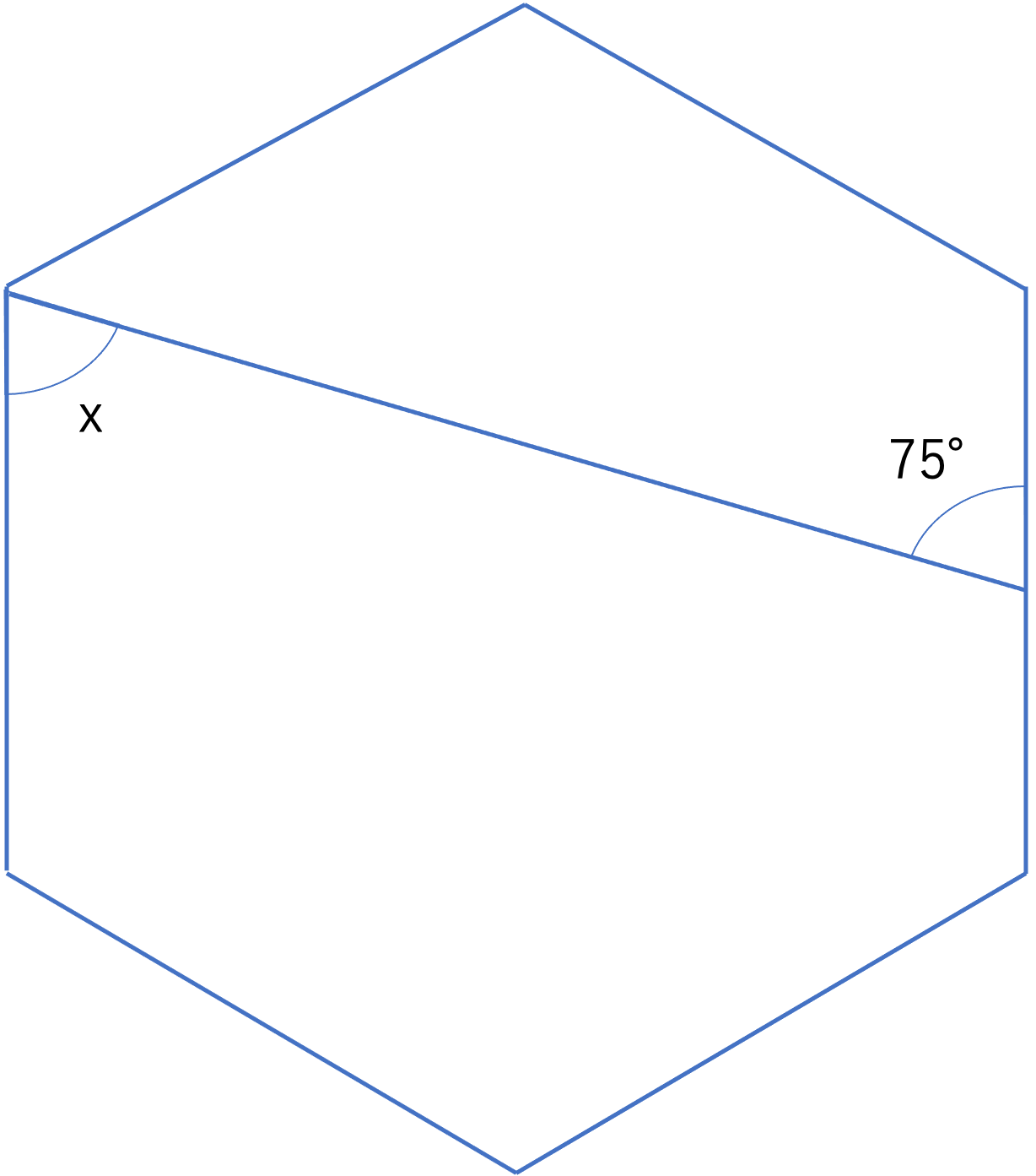 下の図は正六角形です。角xの大きさは何度ですか。