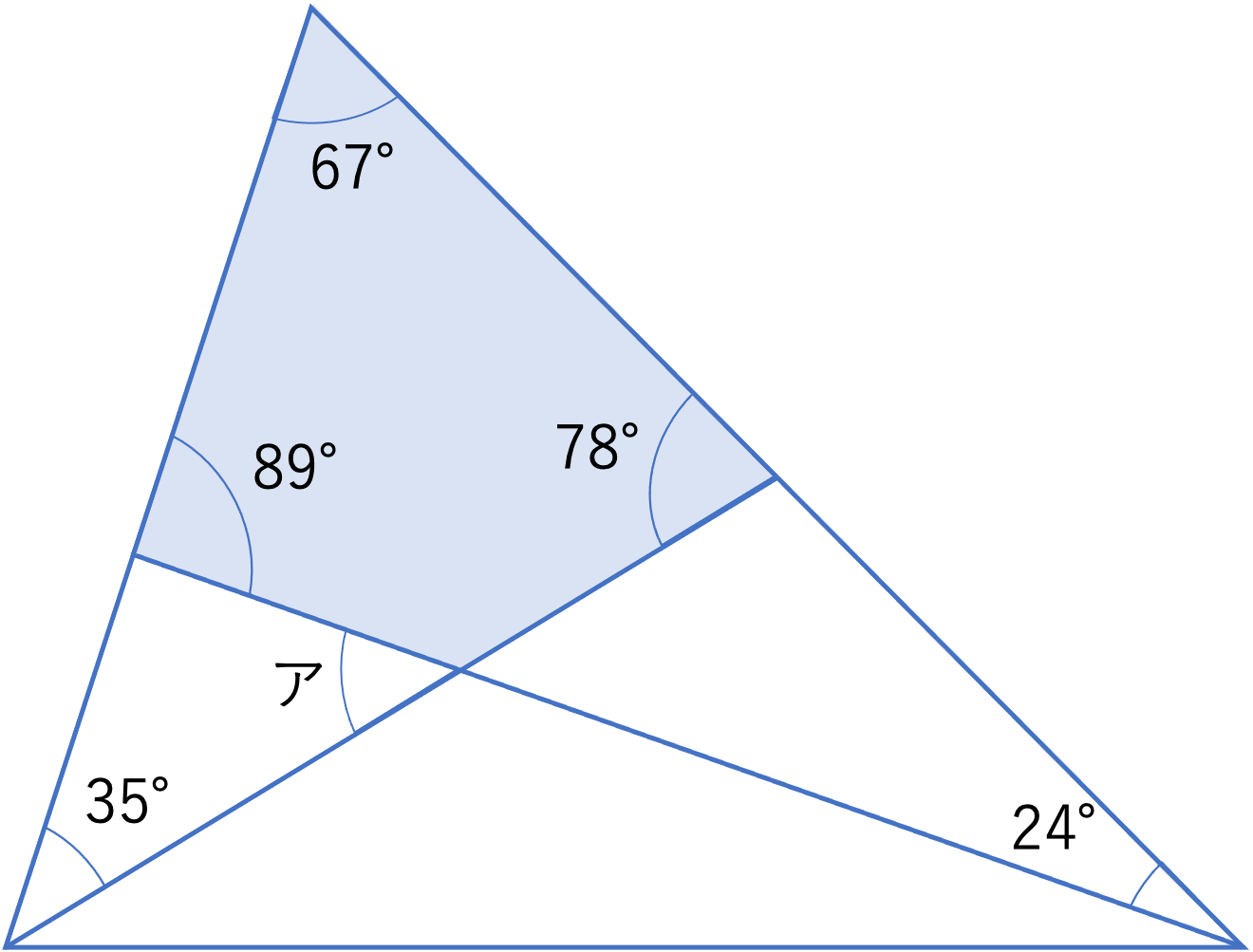 下の図において,アの角度を求めなさい。