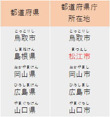 中国地方の島根県(松江市)もふくめ、「松」という字の入る県庁所在地が3つもあることに中止しましょう。4つの県の場所も必ず覚えるようにしてください。