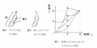 ダイズ、メダカ、ヒト、ヒキガエルの4種の生物について、子が生まれるときの様子を比較する問題もありました。上の図の左2つでダイズの種子について説明を加え、一番右の図7で4種の生物の受精から生まれるまでの子の大きさの変化を選ばせる問題が出題されました。すべて大問1題で、設問は問9までありましたが、その中に条件を含んだ長めの説明文と、図やグラフがいくつも入っていて考察させる形の問題でした。