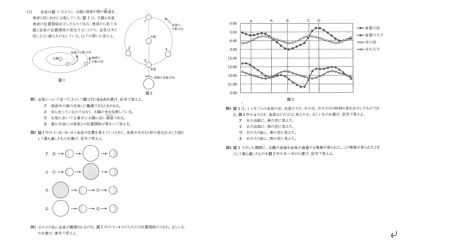 問4、問5のグラフの問題は応用問題で、そう簡単に直感で解けるような問題ではありませんが、金星の動きと地球からの見え方について確実に結びつけて理解できていれば、そう悩まずに解答できると思います。