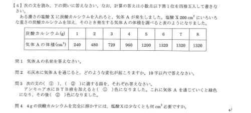 理科の計算問題が出てくると、特殊な問題という意識を持ってしまいがちですが、気体の発生に関する問題は結局は問題文とそこに出てくる資料やデータを確実に読んだ上で、算数の問題として解いていくものだということがわかると思います。