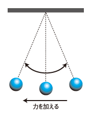 力学が苦手、という方でも、典型的な基本問題が解けないわけではありません、例えば、以下のような図が出題され、振り子の長さと重さの関係の問題はそれほど抵抗なく解くことができるお子さんが多いです。テキストの条件通りに解けばいいからです。基本の形としてテキストに書かれているこの図、見たことがありますよね。