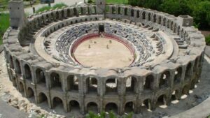 フランス南部のプロヴァンス地方都市アルルに残されている、ローマ帝国属州時代建造された遺跡群。約2万6000人の観客を収容できるローマ劇場や、戦車競走や剣闘士の試合を開催して観客をわかせた円形劇場などローマの繁栄を思わせる遺跡群が残っています。