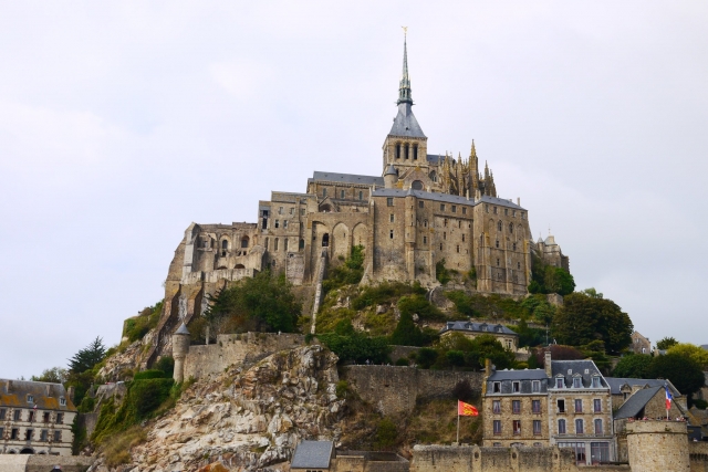 フランス北西部、ノルマンディーとブルターニュとの間にはさまれたサン・マロ湾の南東、モン・サン・ミシェル湾上の小島にある修道院。付近の海域は潮位の差が大きく、岩がちの島の中央にそびえる壮麗な修道院は美麗で毎年多くの観光客が訪れるフランス有数の観光地です。