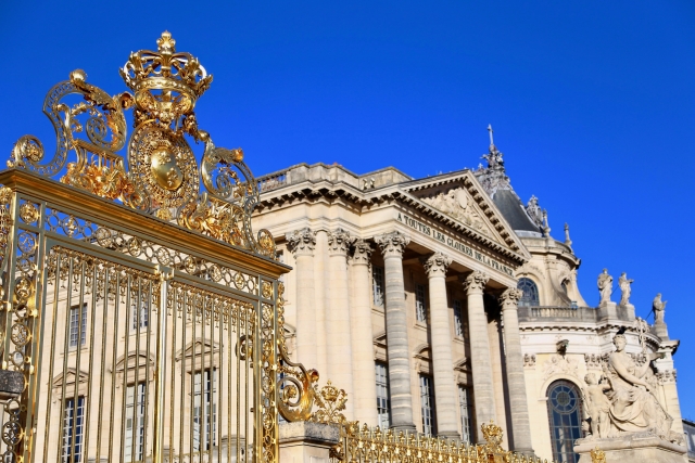 パリ南西のベルサイユにあるルイ王朝の大宮殿。壮大な整形庭園は 1660年代に A.ル・ノートルが計画しました。ルイ15世の時代には A.ガブリエルのもとロココ様式による増築や改修が行なわれ、18世紀には古典様式の室内装飾が加えられました。
